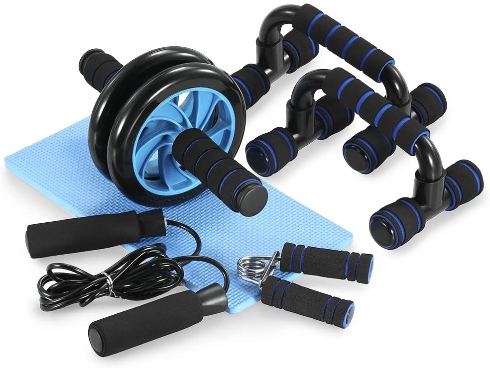 TOMSHOO Juego de Rodillos de Ruedas 5 en 1 Rueda Abdominal + Push Up Bars+ Cuerda para Saltar +Fortalecedor de Mano con Esterilla Deporte, Gimnasio en Ejercicio en Casa de Fitness Abdominales Culturismo